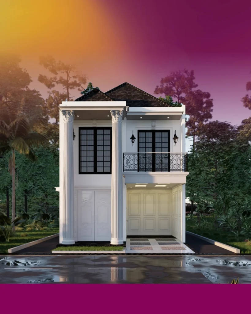 Rumah type granada, dengan luas 80/90, rumah dua lantai dengan desain yang elegan, mengusung desain bangunan model eropa, rumah ini juga dilengkapi dengan fitur smart home.